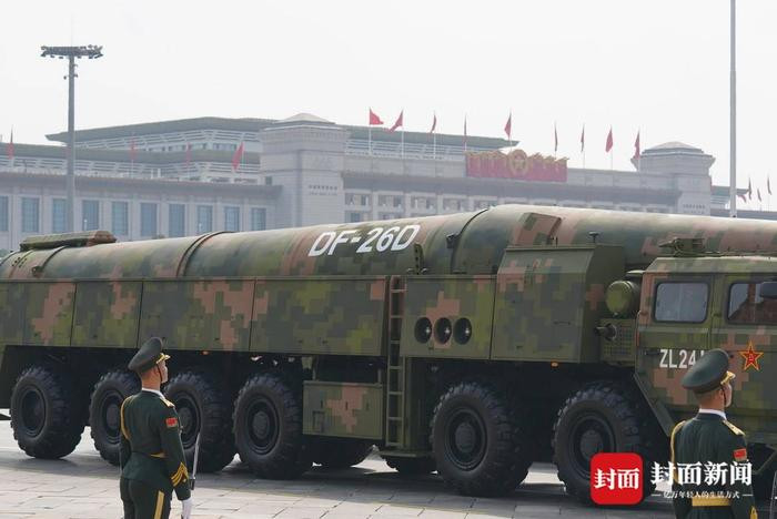 “东风-26导弹既能装核弹头,也能装常规弹头,可跨区域机动,灵活选择发射阵地,精确打击地面、地下、海上目标。”邵永灵认为,可以看出我国火箭军打击样式不断迭代更新,作战能力不断实现新突破,东风“快递”更快更远更准。